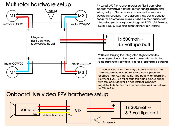 - Support WL-V929, E-flite MQX, Hobby King Q-bot or similar cloned models (must be shaft/spur geared rotor) and similar mini quad hardware.