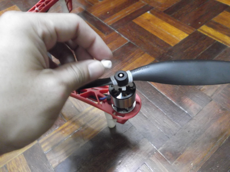 After normal proppeller installation on the prop saver/collect, just insert the hub cap above the motor shaft and press down towards the motor and propeller hub till tight fit.