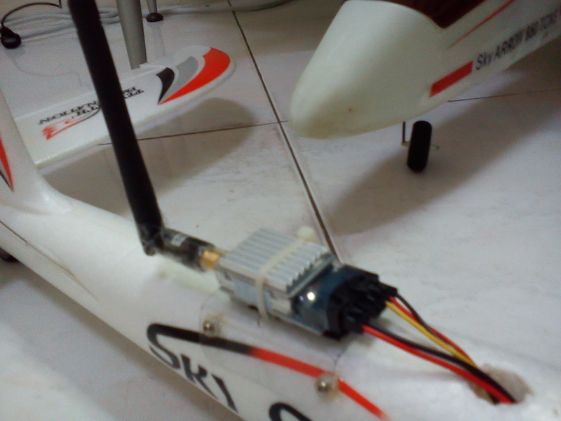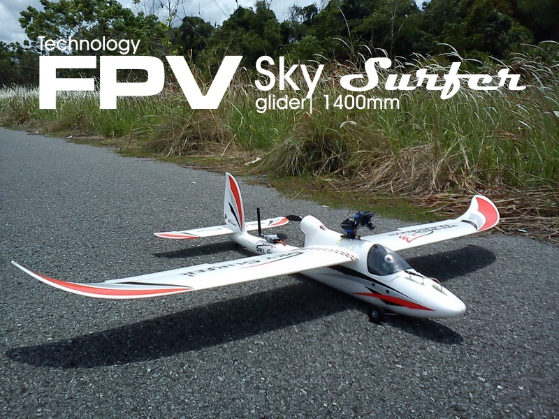 Before installing the FPV equipment it must be flown LOS (Line Of Sight) first to get a proper neutral control trimming. Its not that hard to install the FPV equipment on Sky Surfer, the huge inner cavity fit almost anything while the camera mechanism and video transmitter were located outside. All you need is just plug in where necessary provided you've been reading some guides from several online forum such as Fpvlabs, Rcgroups, Rcuniverse, DIYdrones, Flitetest and etc before you go full gear on FPV. Just be caution to separate critical hardware such as receiver and video transmitter away from RF interference such as SBEC
