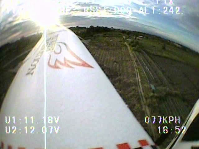 The details below flown and tested using FPV hardware mentioned above. This plane flies stable in any wind condition, very docile and tame under any beginners pilot thumbs (assume i'm flying in 15km/h wind speed head-on). Given at 300~350m altitude at 25~30% throttle will last a good steady 45 minutes worth of flight time.