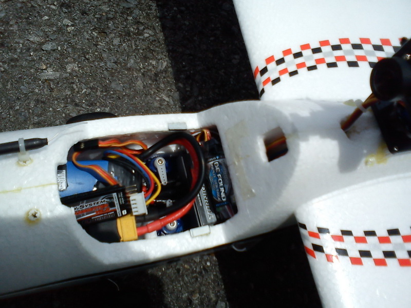 and CCD camera wires because wires do emit slight RF interference that could offset/decline your signal momentarily up in the air, usinbg ferrite magnet should solve some problems. Running on 6x servo (6x 550mA current) should match the current supply draw from UBEC 5V/5A to avoid sudden "Brown Out" or dead stick control in the air. Yes, FPV stuff needs lots of math calculation and know how 101 stuff. The stock ESC module that propel the motor are likely to be stock 20~25A but i changed it to 30~40A for extra reliability and extra thrust power to bail out from any problem especially when the airframe exceed 1kg limit. One thing i don't like about setting up inside this airframe that i need bunch of long servo connector, power wires and video wires running quite a length throughout the fuselage which is the reason why there lots of RF emission along the lines that dwarf your signal propagation...the worse thing was i only knew this after 5 years of FPV build, the consequences of ignoring RF stuff is bad for long term usage.