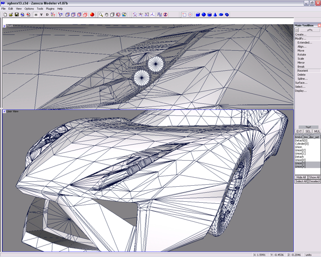 Let get away from yesterday topic about the gills thing and get infront doing the headlights. My mind still a bit blur today as am i am clueless where to start meshing up some face/vertices. At first i decided to create deep tunnel like headlight hulls with two telescopic HID lights poke out but it looks so uncommon. Then i duplicate the base surface and raise it up above as an artificial "EYE LID" like BMW but it does look matching in my opinion. After that i sat down on my chair and stare straight on my Notebook screen for almost two hour without moving my mouse just wondering what did went wrong with my headlights design because it looks so "Common". I'd expect my brain to pull out something new for XYBORX, something out of the universe thing. Too bad the my brain wasn't trigger out anything special today. Telescopic headlights lens are soo yesterday! I should through my idea into the dustbin and do it all over again.