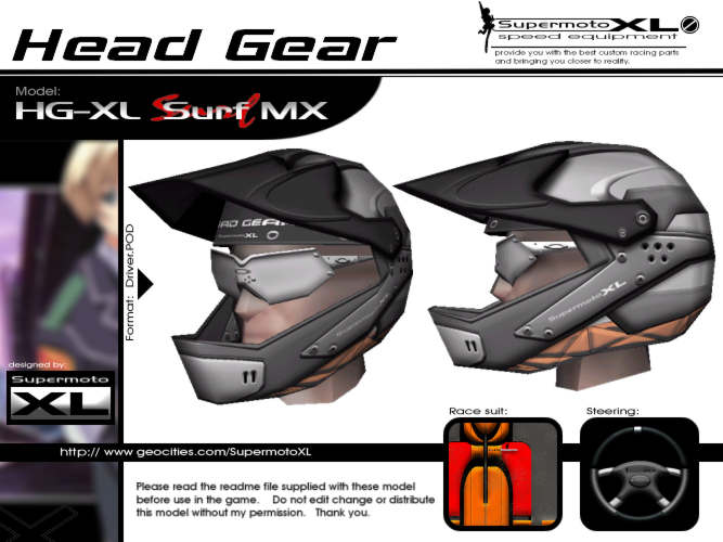 General info | model: HG-XL Surf MX | platform: PC / Mac | version: 4x4 evo1 & evo2 | format: Driver.POD | avg file size: 719KB(evo1), 1.01MB(evo2) | date release: 28-10-2002 | last Updated: -- | accessibility: Racing Mode | model type: Driver