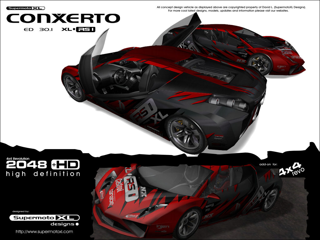 General info | models: CONXERTO ED 30.1 XL-RS1 | platform: PC | version: 4x4 Revo Mods (2048 HD-High Definition) | class: Career | default access in game: NISSAN | avg file size: 17.11MB | date released: 12-Sept-2010