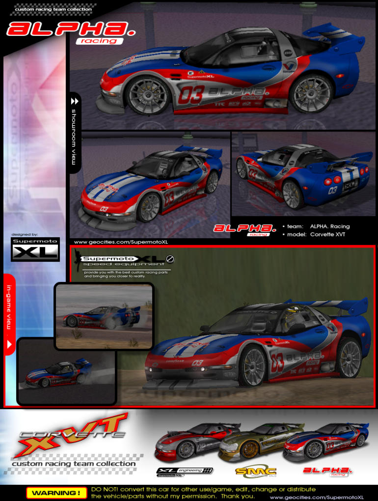 General info | models: Corvette XVT | platform: PC / Mac (e2) | version: 4x4 evo 1 & 2 | class: Career | default access in game: Chevrolet | avg file size: 819kb (evo1) , 1,200kb (evo2) | date released: 21-4-2003 | last updated: --