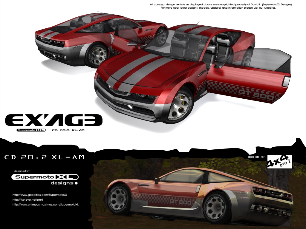 General info | models: EXAGE CD 20.2 XL-AM | platform: PC / Mac (e2) | version: 4x4 evo2 | class: Career | default access in game: NISSAN | avg file size: 6.54MB (evo2) | date released: 8-Aug-2008