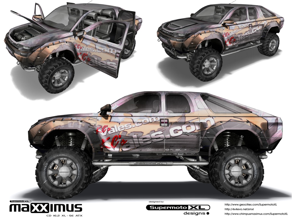 This truck designed for KC's Vales.com on 4x4evo2 game. It uses "SILVER DREAM" chromatic feature in 4x4evo 2 provided with Texture and Lighting hardware support on user computer. This variant also have same stock handling and performance features as the original standard "MAXXIMUS" model. I called it the themed truck built for variety and special tribute event.