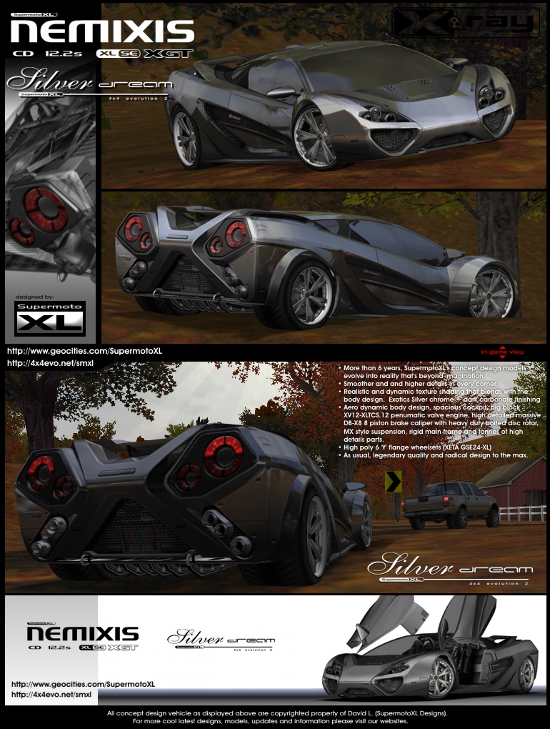 General info | models: NEMIXIS CD 12.2s XL-SE XGT | platform: PC / Mac (e2) | version: 4x4 evo 2 | class: Career | default access in game: NISSAN | avg file size: 5.53MB (evo2) | date released: 9-4-2006 | last updated: 10-4-2006 (fix high poly crash, remove headlight layer.)