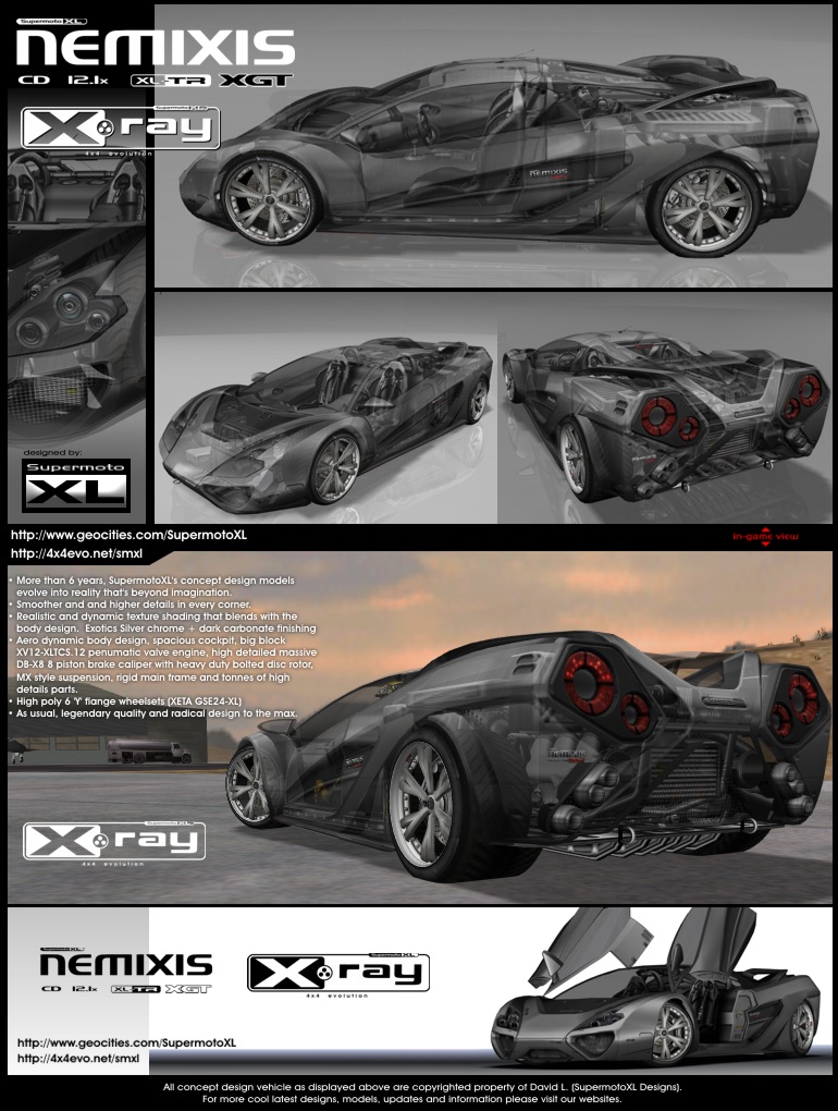 General info | models: NEMIXIS CD 12.1x XL-TR XGT | platform: PC / Mac (e1) | version: 4x4 evo1 | class: Career | default access in game: NISSAN | avg file size: 4.68MB (evo2) | date released: 9-4-2006 | last updated: --
