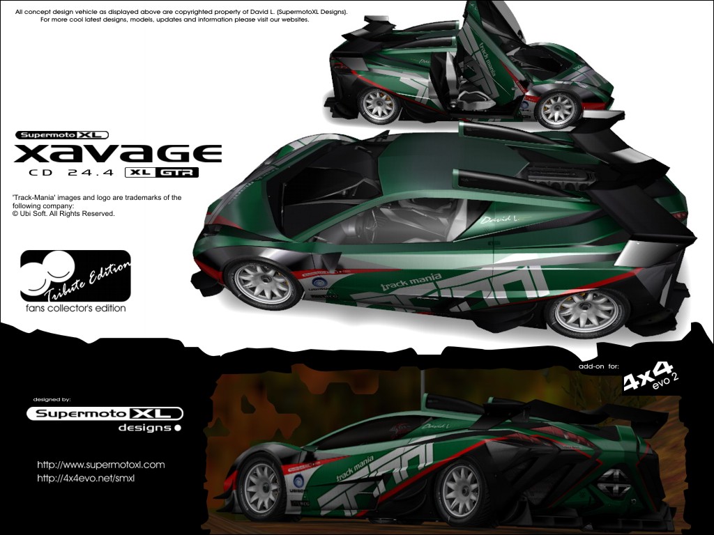 Having been popular with several models jump into Track Mania through third part support from people like Starbuck And Chazatrix i decided to custom design special models for Track Mania fans. This special edition models not more and not less have equal physic and 3d mass from XL-GTR based model. So there's not much to worry about. The original HD version of GTR available in SDK package at SDK page, ready for download. Enjoy.