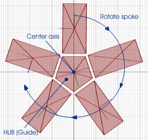 - OK, now since you are building a wheel with five spoke: Rotate the triangular box 'SPOKES_1' that you've just made. To 0 degree up.