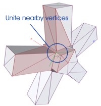 9. In User View: With 'VERTICES' button selected highlight the 'FLANGE' object and right click. You can see the pointy intersection of vertices nodes between the spokes and the hub. Unite them using the 'CREATE' >> 'OBJECT' >> 'UNITESELECT' from main tool bar on your right windows. 10. When you are done uniting the nearby vertices it should look like as shown above. Repeat the same task for other vertices.
