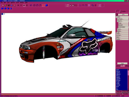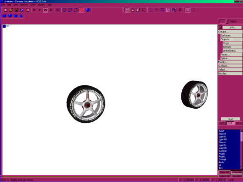 - Let's get started...now..Download your favorite truck in to your Z-Modeler. Be sure you use "3D View" mode as your window viewer, left & right click and move your mouse to adjust your desired truck/car position in your windows 3D viewer. Don't forget to import your wheels (*.SMF or *BIN) and positioned into your truck. Resized your "3D View" mode windows to max. When you get it right your truck should look like this or anywhere you like. Look at the sample screenshot below.